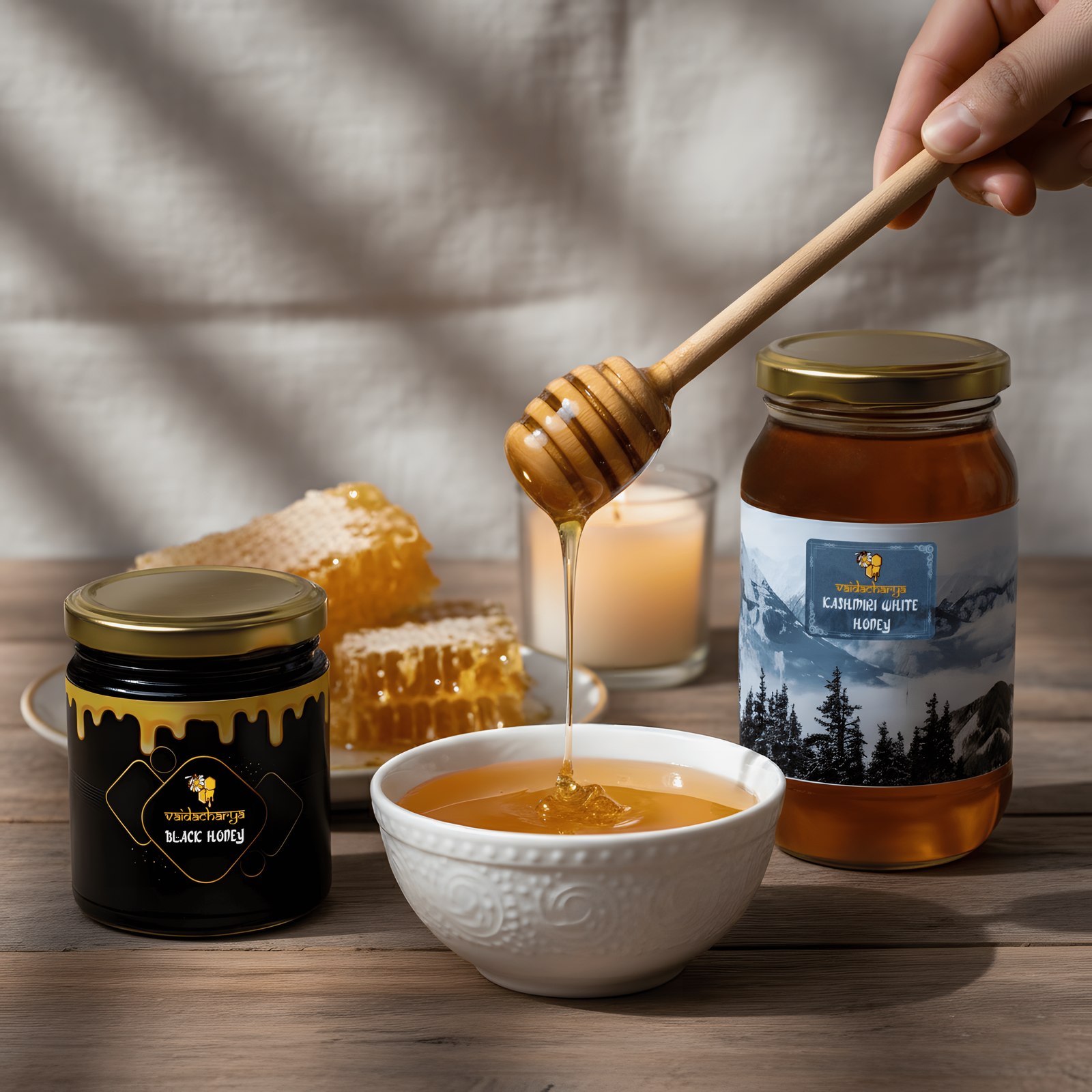 A premium combo pairing creamy mild honey with bold, nutrient-dense black honey—perfect for daily nourishment and gifting.